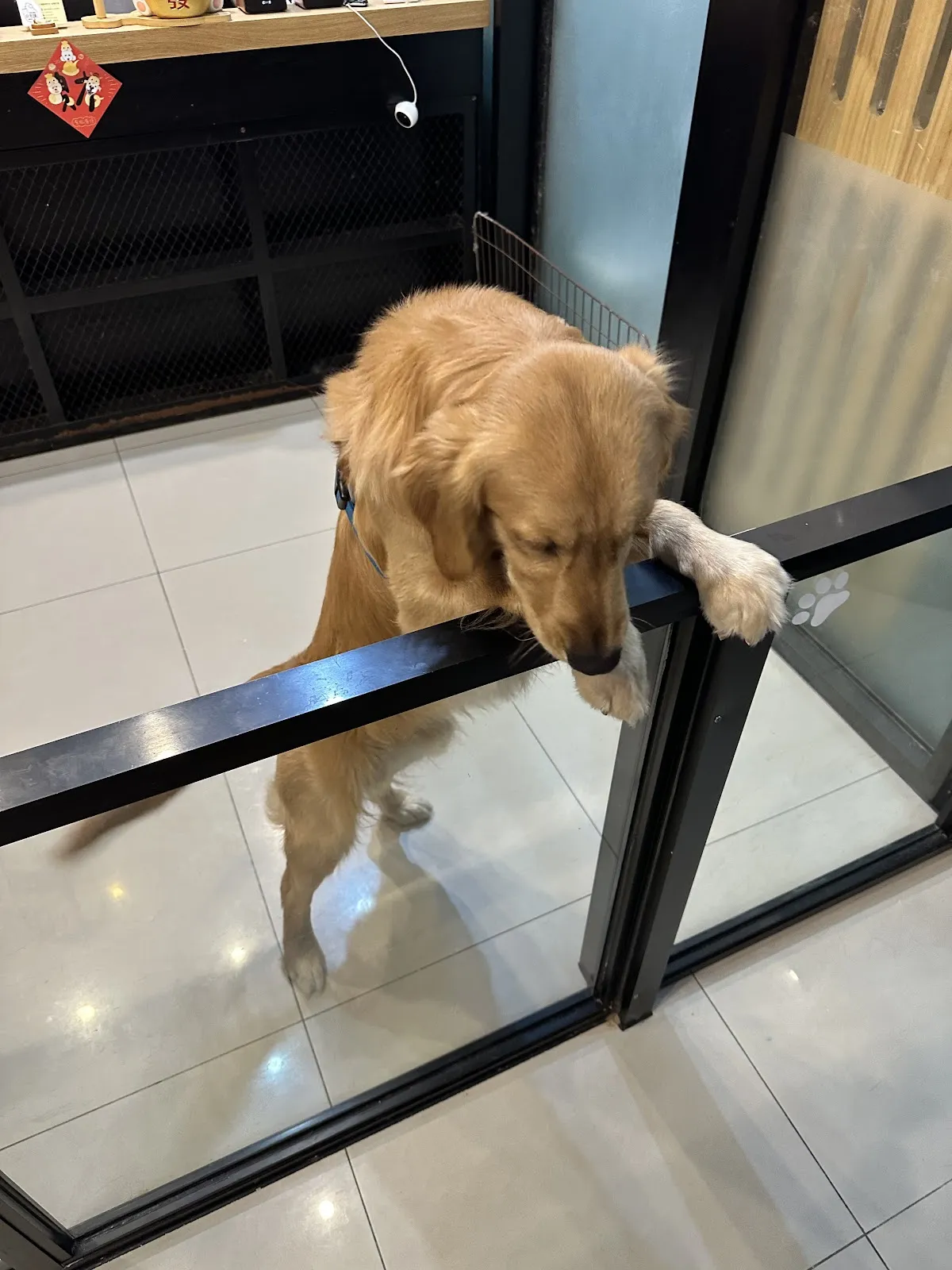 店狗很可愛,雖然走來走去但是很安靜不會叫,是一隻乖巧的好奇狗狗。